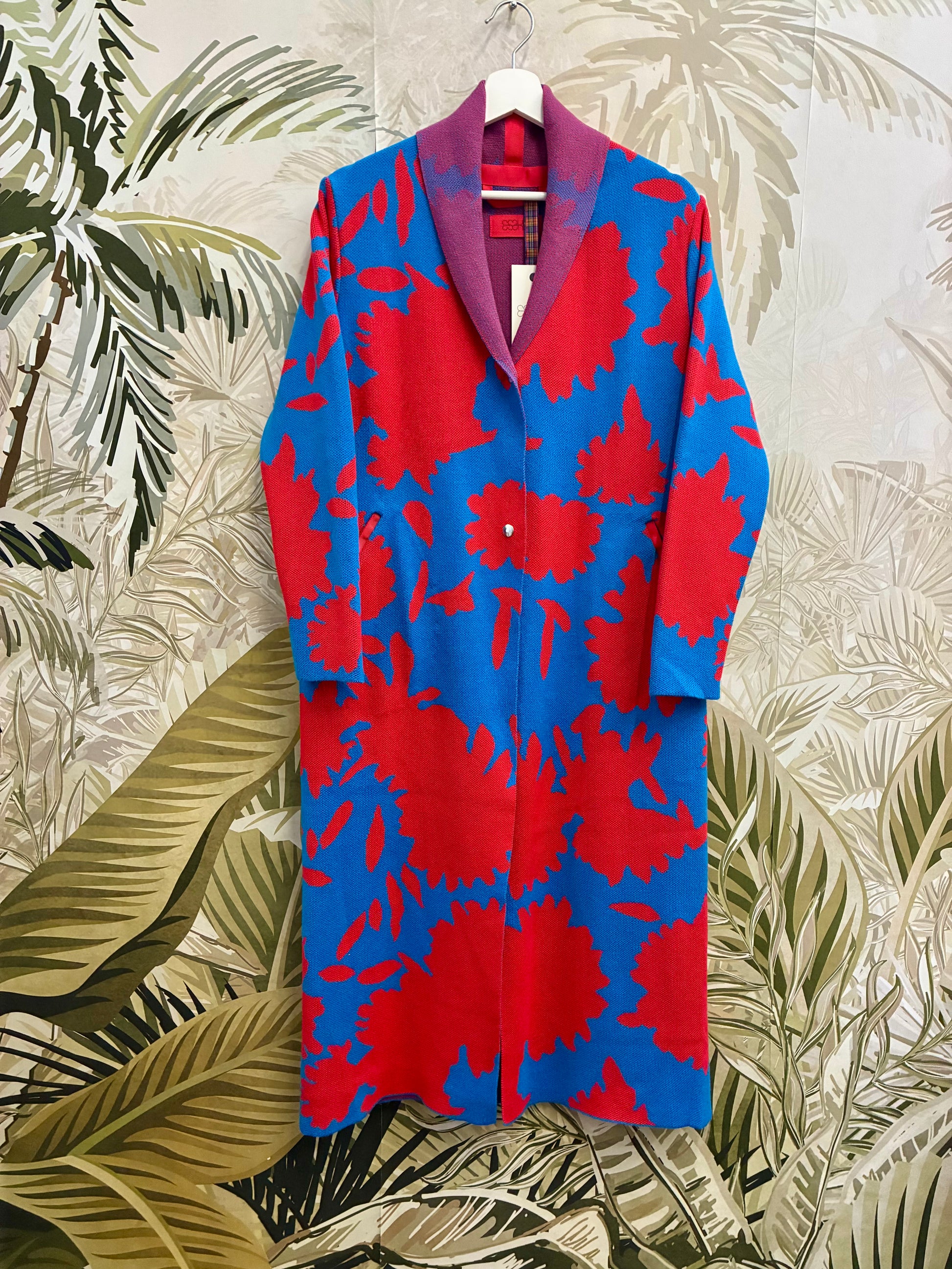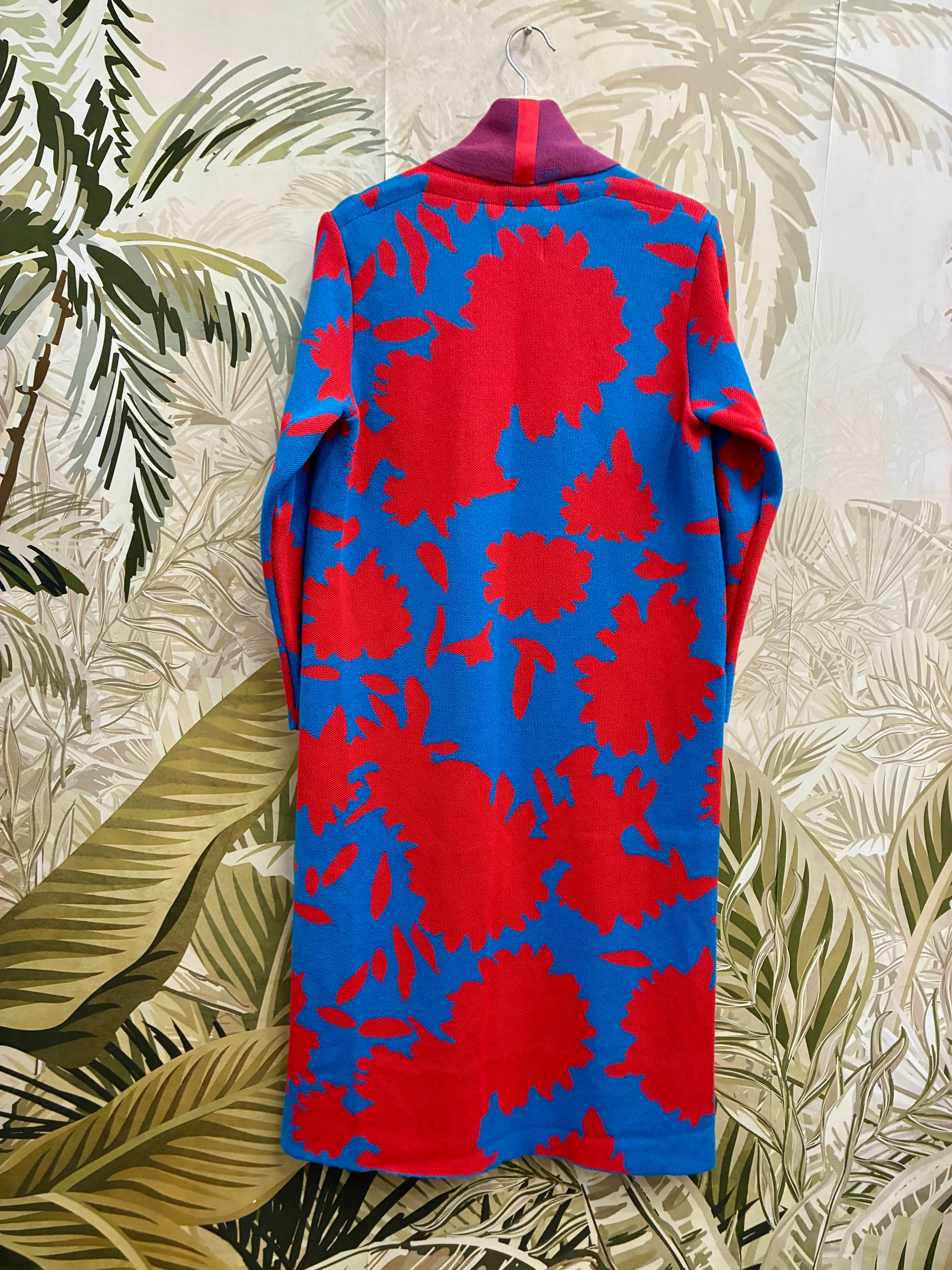 Light knitted coat with flower pattern. Has cut pockets and 2 silver snap fastener at the waits.