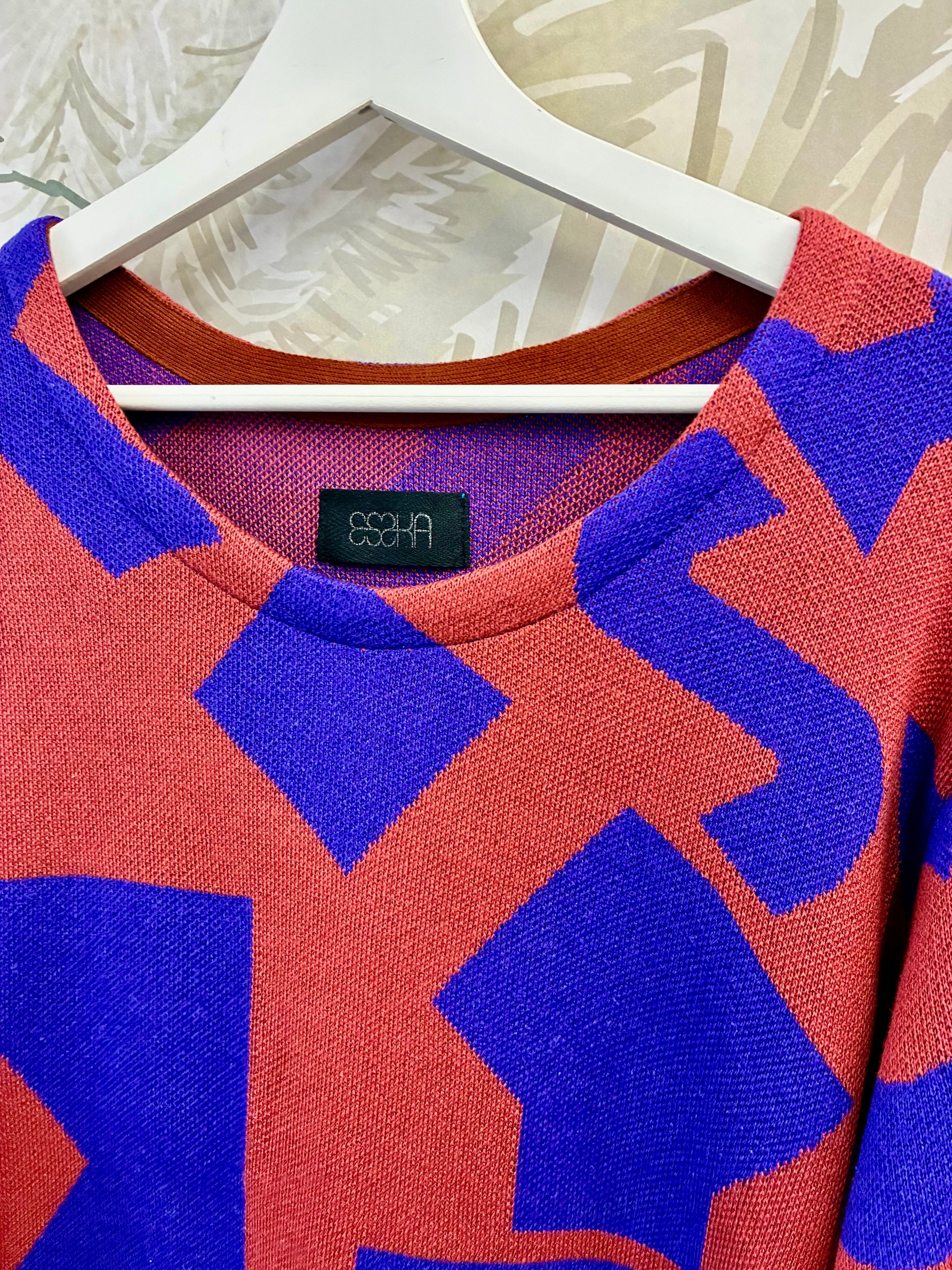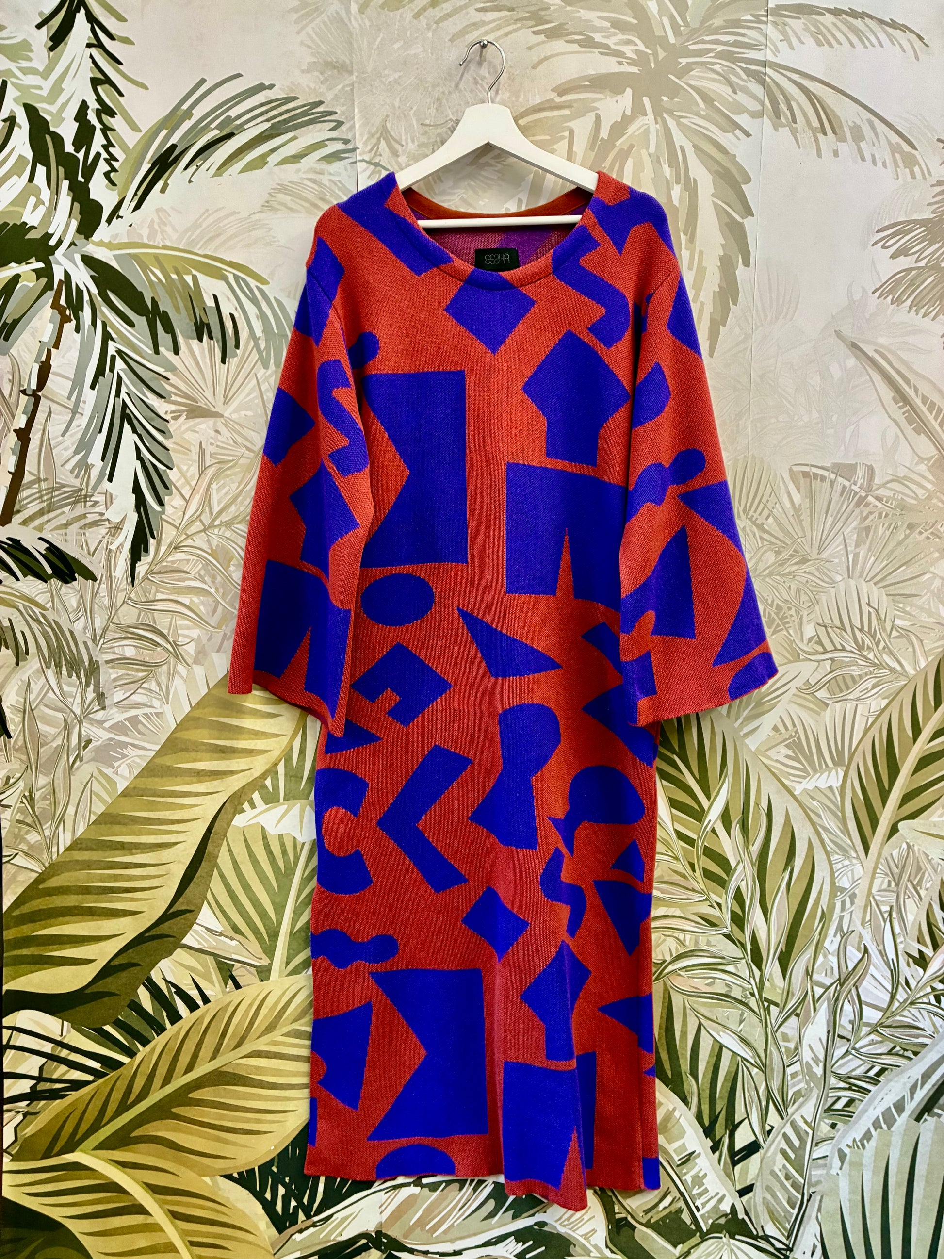 Knitted long-sleeved,maxi dress with geometric pattern and pockets. Good vibes, easy to wear.