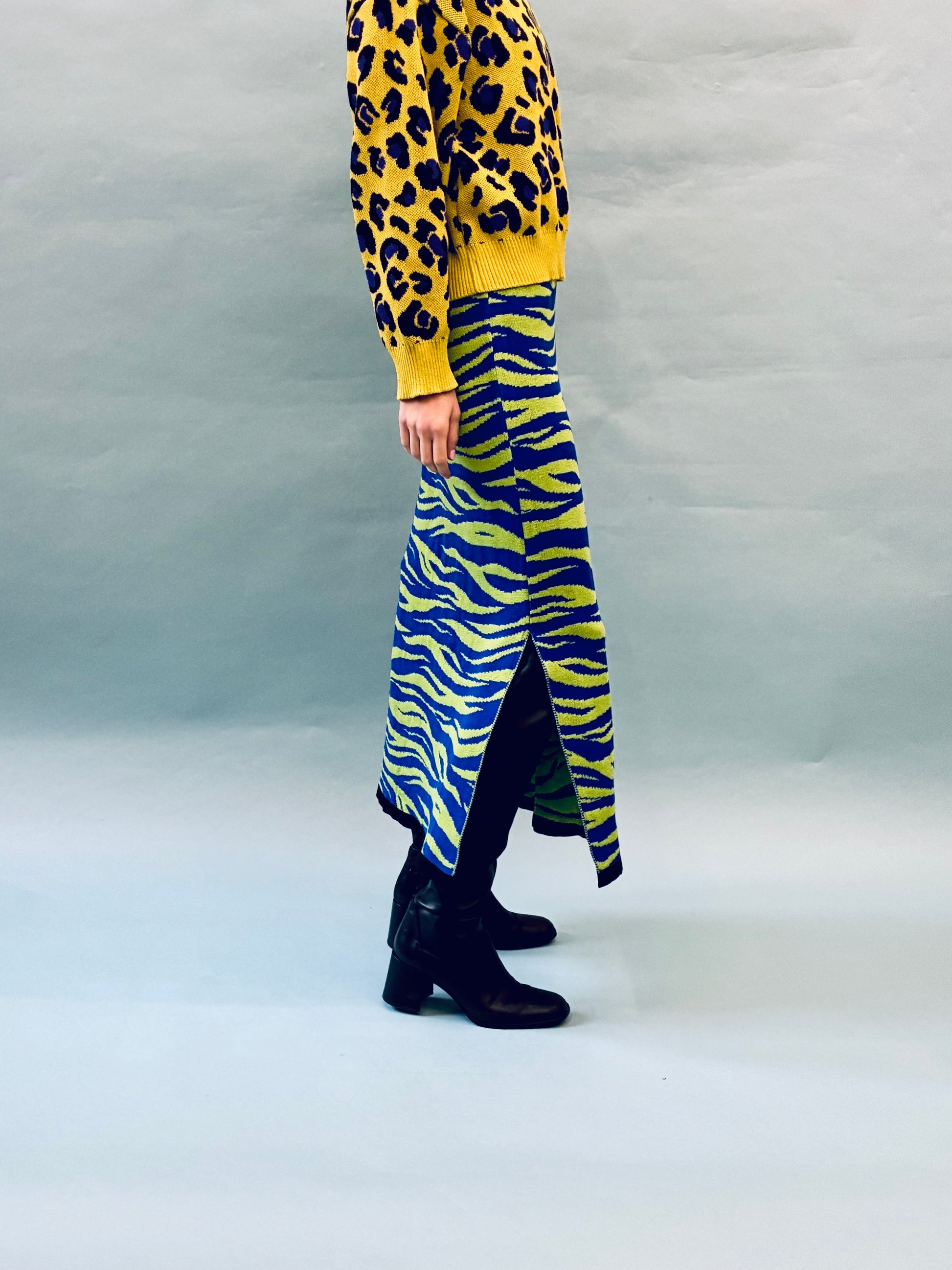 Knitted skirt with animal pattern. Cozy wear, 'A' line with elastic waist with rose cord.