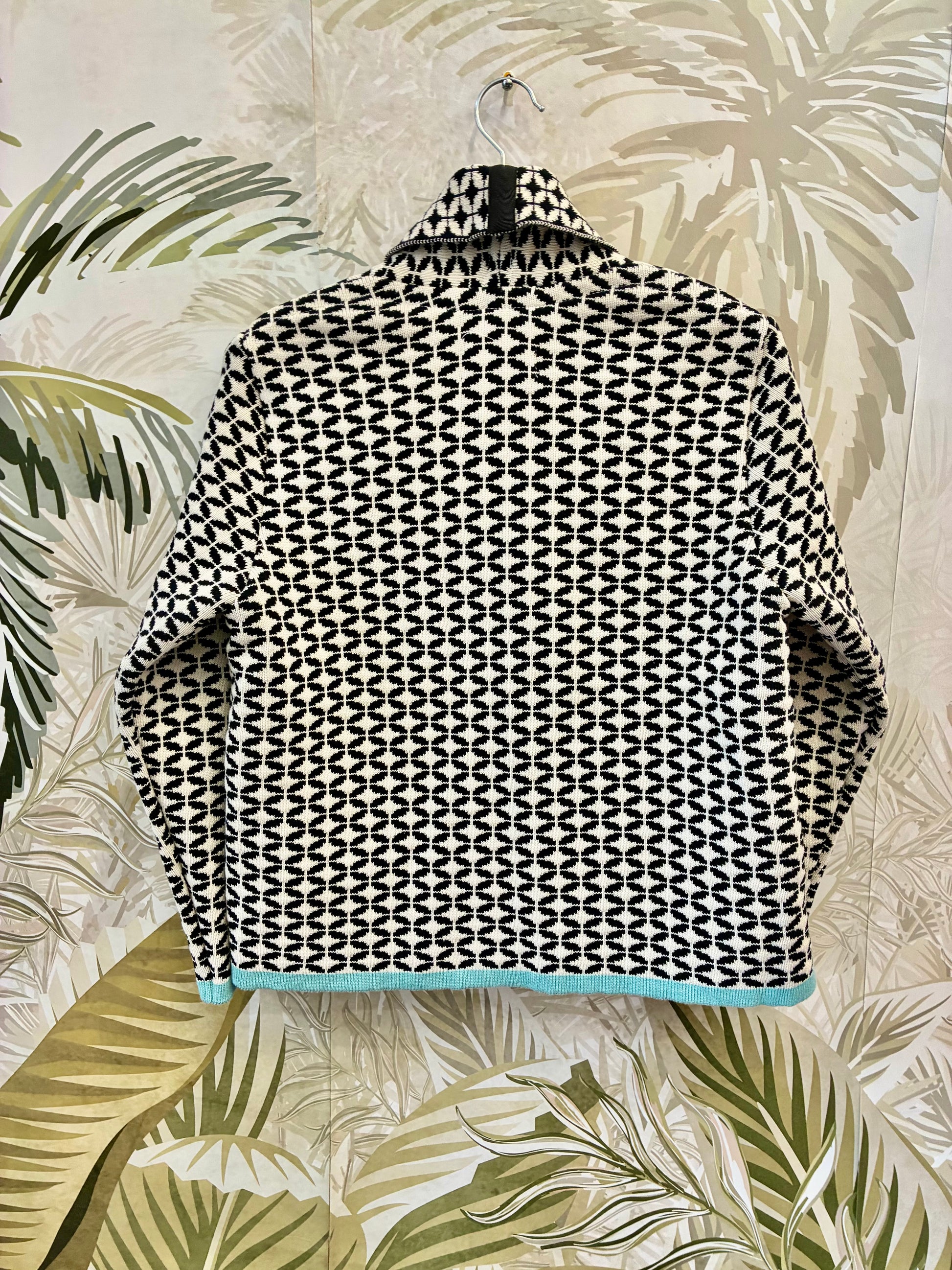This was Eszka's first pattern from which a coat was made. Considered a classic and inspired by the Portuguese tile painting. Has cut pockets and two snap fasteners at the waist.