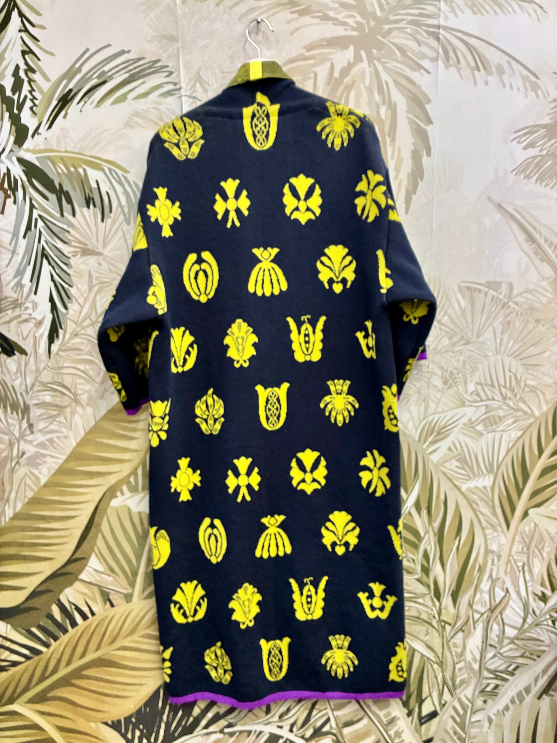 Knitted kimono coat with a traditional Hungarian embroidery pattern. Effortlessly stylish and easy to wear, this unique design features roomy cut pockets for added functionality, making it the perfect statement piece for layering through the seasons.