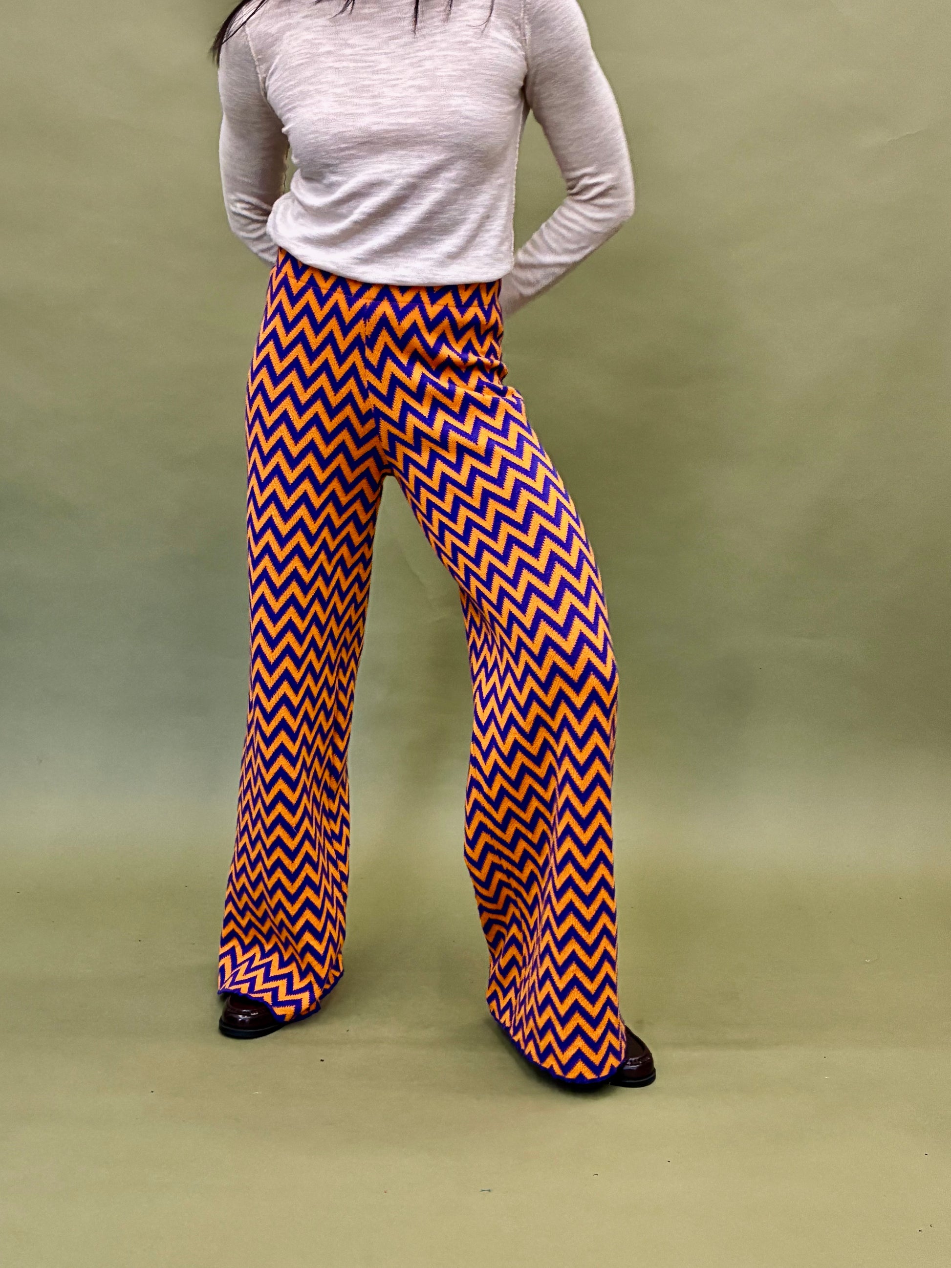 Knitted pants with a ZigZag pattern. Cozy wear with elastic waist. Oversize style